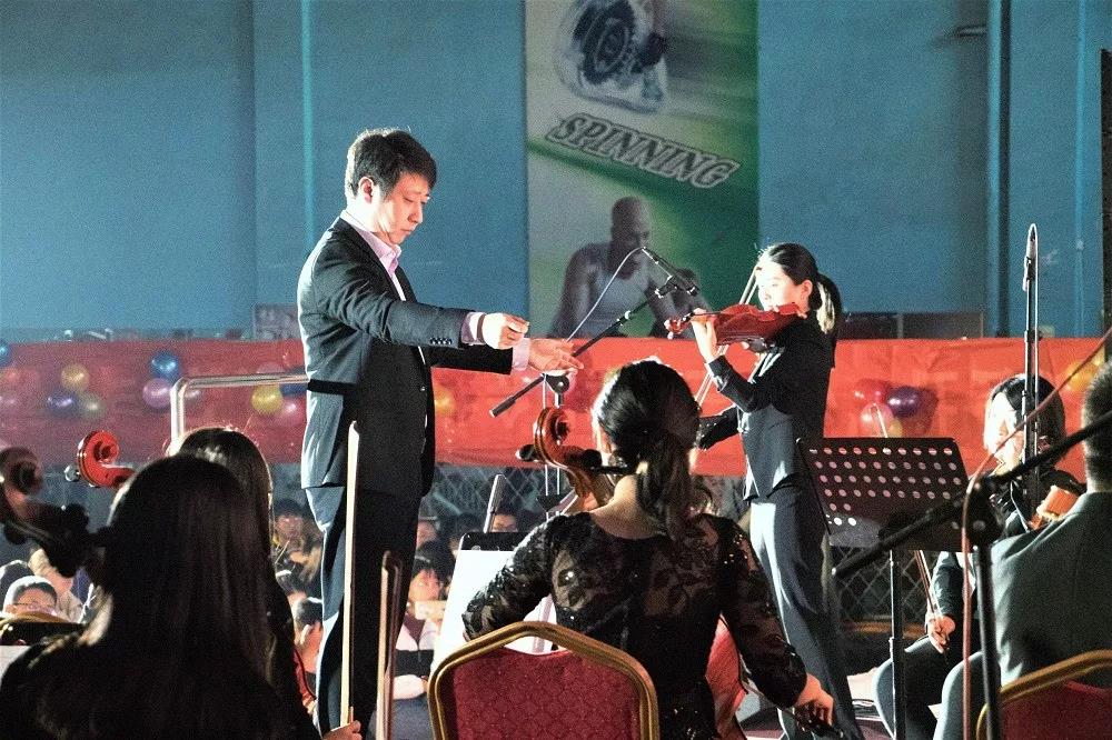 演出开始前,乐团杜宝凤团长和校团委马秀叶书记交换了纪念牌。演出在《北京喜讯到边塞》的恢弘气势中正式拉开帷幕,庞大的阵势与整齐的队列给人一种心灵的震撼。它以“党中央粉碎四人帮的阴谋”,全国人民为此欢呼雀跃为创作背景。铿锵有力的节奏触人心弦、融入当地文化特色,再现了边塞人民听到喜讯时的欢快心情,引起观众的共鸣。随后响起的《弦乐小夜曲》,婉转动听,明朗轻快的节奏,奏出青春的气息、生命的活力,一种突破束缚、向往自由的欲望呼之欲出。篇章之间起承转合、抑扬顿挫,带动着现场的节奏。爱情自古以来就是一个永恒的话题,一曲《梁祝小提琴协奏曲》,以“梁山伯与祝英台”凄美的爱情故事为主线,生动地再现了梁山伯与祝英台从相识到相恋,最后无法突破封建束缚,双双化蝶离开尘世的过程。其以不同的演奏方式传达了整个故事情节中主人公不同的情感与遭遇,高超的演奏技巧令人啧啧称奇。紧接着,乐团演奏的曲目是《魔女宅急便》,乐曲将女孩追求独立、勇于面对困境的形象描绘的淋漓尽致,扣人心弦。“啊啊啊,黑猫警长”,当《黑猫警长》的乐曲响起,观众们不自觉地哼唱起来。这首代表着大家童年的乐曲节奏紧凑轻快,再现了“黑猫警长”保卫一方平安的正义形象。最后一曲《葫芦娃》,以“葫芦娃大战妖怪”寓意人们要勇于面对困难、用自己的智慧去克服成长道路上的重重阻碍。音乐会在行云流水般的演奏中画上了句号。其中,乐团音乐总监郝兴晔对每首曲目的创作背景以及乐器做了详细介绍,带入主题,形式新颖,为我校师生上了一堂生动地音乐课,赢得了现场师生的阵阵掌声。