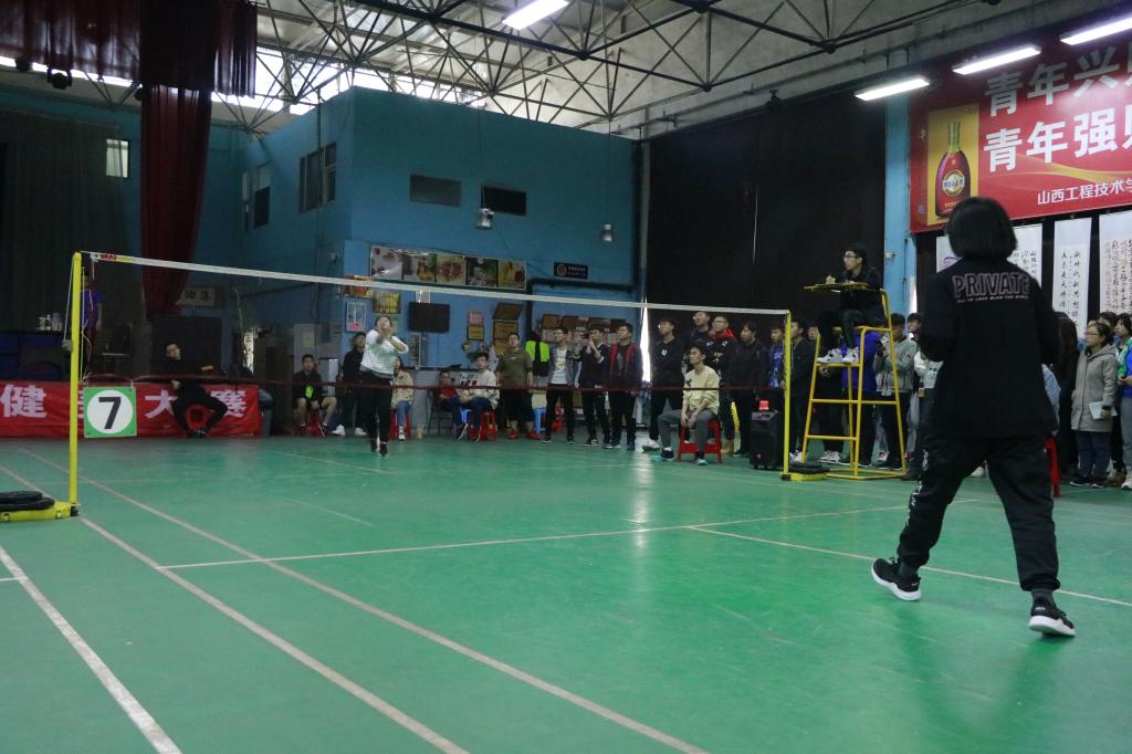 此次决赛采用三局两胜制,分为男子单打和女子单打。首先进行的是女子单打。参赛选手分别是地环系的齐丽霞和土建系的范冬英。比赛刚开始,齐丽霞处于上风,领先了少数球,但范冬英也不甘示弱,使出最大努力,开始了猛烈的反击,随着齐丽霞选手的几个界外球,范冬英选手不仅追平了比分,还领先了2分,比赛进入白热化阶段,球上的羽毛飘落在地,比赛分数也紧随其后,场外的观众看的惊心动魄,为两方选手鼓掌并直呼“好球”,由衷感叹选手们精湛的球技。最后齐丽霞选手更胜一筹夺得女子组冠军。在选手们休息之余,羽协的小伙伴们也为比赛献上了他们的表演,让我们真正体会到了速度与激情。精彩节目结束后,新一轮比赛拉开帷幕,参赛选手分别是管理系的张杰和土建系的向中山,他们奋力拼搏,挥汗如雨,比赛中不断出现精彩的拉球与扑杀等场面,比分也起伏不定,那一吊、一扣之中还真有几分职业选手的风范!观众席也传来一阵又一阵的呐喊。最终,来自土建系的向中山选手夺得冠军。