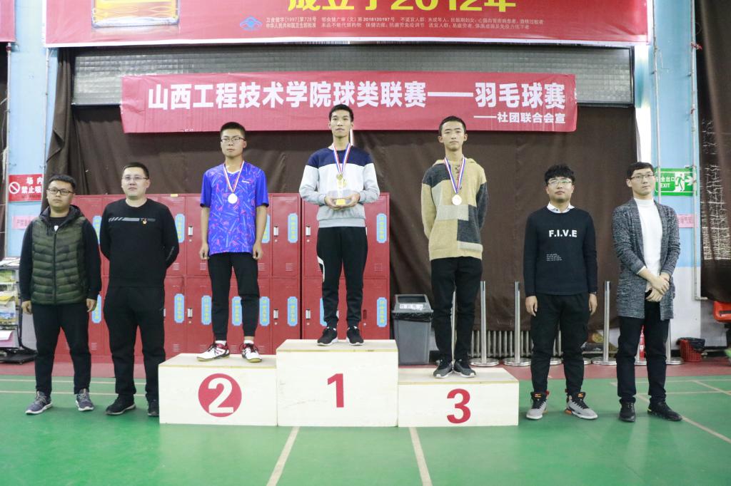 最后由校团委王超老师为冠军颁发奖杯,社联主席句浩,副主席梁翔宇,羽协社长马鑫垚为选手们颁发奖牌。