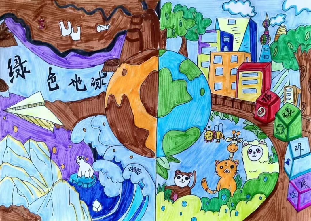 获奖的同学们或在画纸上尽情挥洒笔墨,或在DIY上毫不吝啬地发挥自己的创意,同学们创作的作品紧扣环保主题,色彩鲜明,不但使旧物新用,而且让人眼前一亮。
