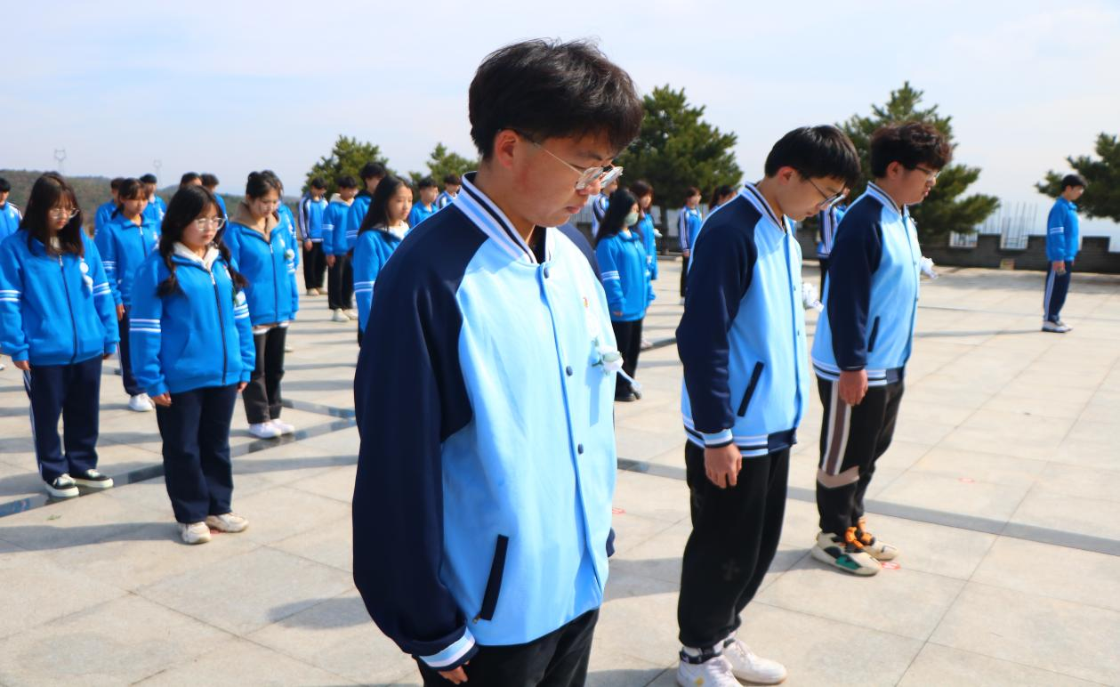 活动伊始,同学们在英雄纪念碑下合唱义勇军进行曲,重温先烈们走过的解放之路。奏唱完毕之后,大家低头默哀三分钟,对革命烈士的哀悼和怀念,回忆先烈的英勇事迹,回忆革命时期的往事种种。默哀完后,同学们进入烈士陵园,有序上前瞻仰烈士墓并深深鞠躬,神情严肃。
