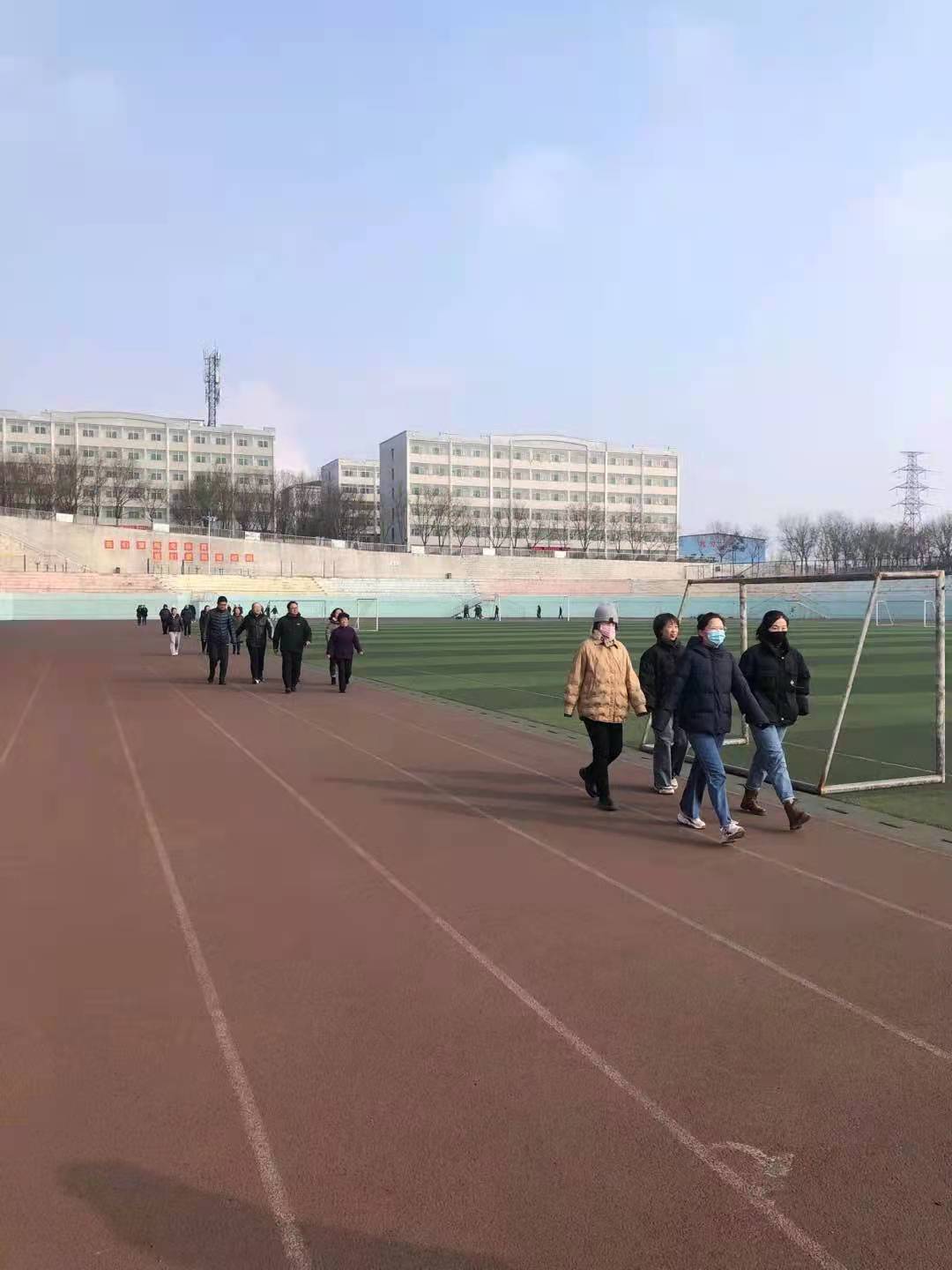 2022年2月16日(正月十六)上午10点,行政分工会组织近80名教职工齐聚东操场进行了健步走活动。正月十六是北方民俗“遛百病”的日子。老百姓认为,正月十六这天到街上走一走,预示着来年一年没病没灾。这一天举行健步走活动比较有意义。