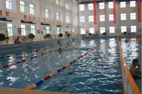 ac米兰官方网站游泳馆简介:学院游泳馆是标准的比赛场馆,泳道长50米,浅水2.2米,深水2.4米,为方便教学铺设垫层500平米,教学区域水深1.2米,体验区域水深0.8米,爱好培训区域水深0.5米。游泳馆层高16米,空气流通好,冬天加装保温罩,水温恒定26--28℃。