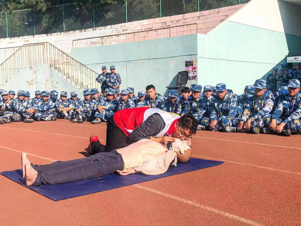 特邀阳泉红十字会讲师王艳以及ac米兰体育教学与竞训部张丽亚副教授与高国安讲师,采取理论与实操相结合的形式,在军训现场利用8个学时,为全院新生普及了救护相关知识。过程中着重讲解了心肺复苏 AED(自动体外除颤仪)、 海姆立克急救法等应急救护知识技能,并在现场手把手指导学生们进行实践操作,使学生了解现代救护新概念,树立应急救护意识,掌握自救互救能力,把“人人学急救,急救为人人”的理念深植于心。现场反应热烈,同学们积极参与现场模拟操作,在一片愉快的氛围中,不仅收获了知识,也提高了面对校内外突发事件的应急处理能力,同时也激发了学生们做正能量传播者,进一步筑牢校园安全防线,为助力构建和谐平安校园夯实基础。