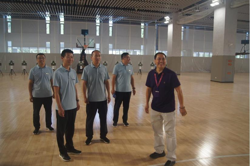 会后,乔凤杰、冯宏鹏带领调研组参观了新落成的清华大学北体育馆。