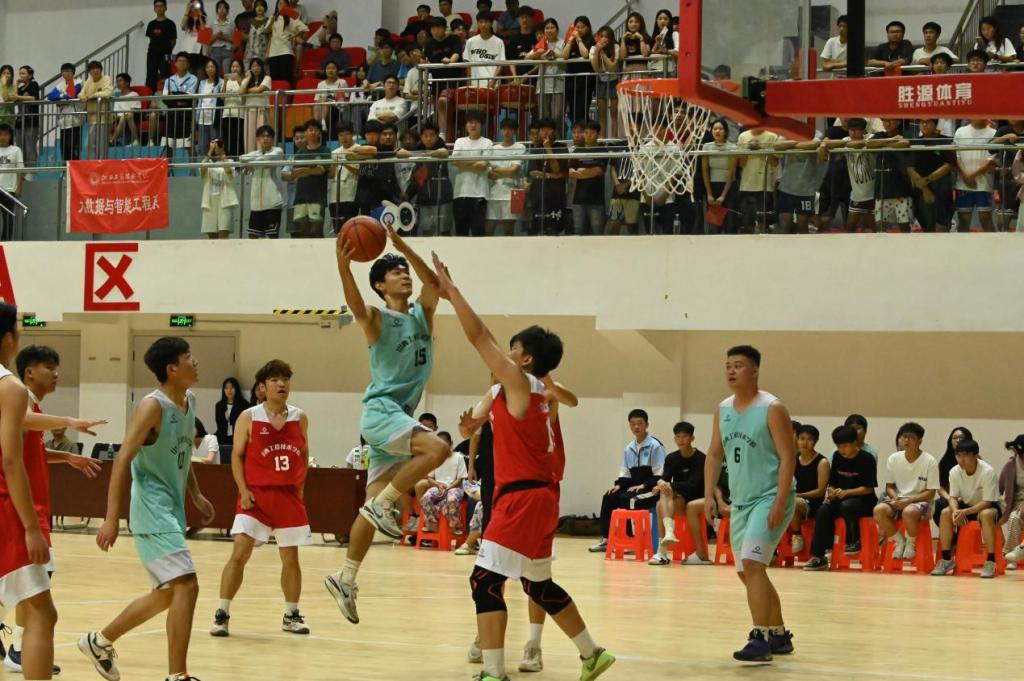 随着比赛的深入,双方队员的竞技状态愈发火热。大数据系队员们不断尝试突破对方的防守,而土木系队员们则时刻保持警惕,紧盯对手的每一个动作。在一次次的攻防转换中,双方队员都展现出了极高的篮球素养和竞技水平,现场观众的热情也被点燃,呐喊声此起彼伏。