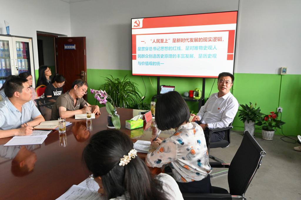 姜俊兵号召广大教工党员要进一步加强对习近平新时代中国特色社会主义思想的深刻内涵和科学体系的认识和领会,学习好、把握好习近平新时代中国特色社会主义思想的世界观和方法论,牢牢把握“学思想、强党性、重实践、建新功”的总要求,行知合一、学以致用,着力解决学院、系部在学科专业建设、教育教学、人才培养等方面存在的难点和痛点,加强自身能力建设,练就过硬本领,为推进特色鲜明高水平应用型本科高校建设贡献力量。