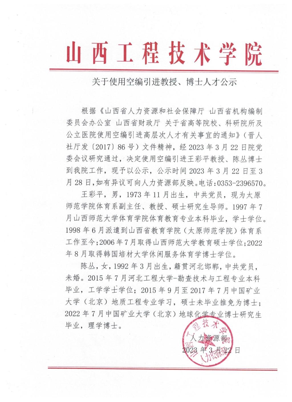 关于使用空编引进教授、博士人才公示