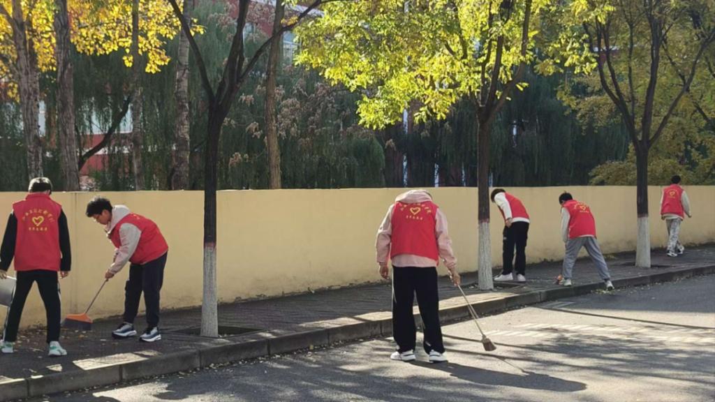 11月2日,清扫活动在校园中有条不紊地展开,志愿者们手持扫帚和簸箕,分散在校园各处。他们分工明确、相互协作,一部分志愿者用力挥动扫帚,所到之处落叶纷纷聚拢,就连花坛、草坪这些容易被忽略的地方也不放过,他们细心地捡拾其中的落叶和杂物,以确保毫无死角。其他志愿者则配合他们迅速将一堆堆落叶装入垃圾袋,不一会儿,一袋袋装满落叶的垃圾袋便整齐地排列在路边。