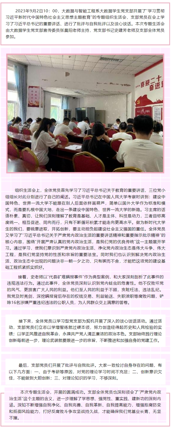 大数据与智能工程系党总支召开迎评促建专题民主生活会