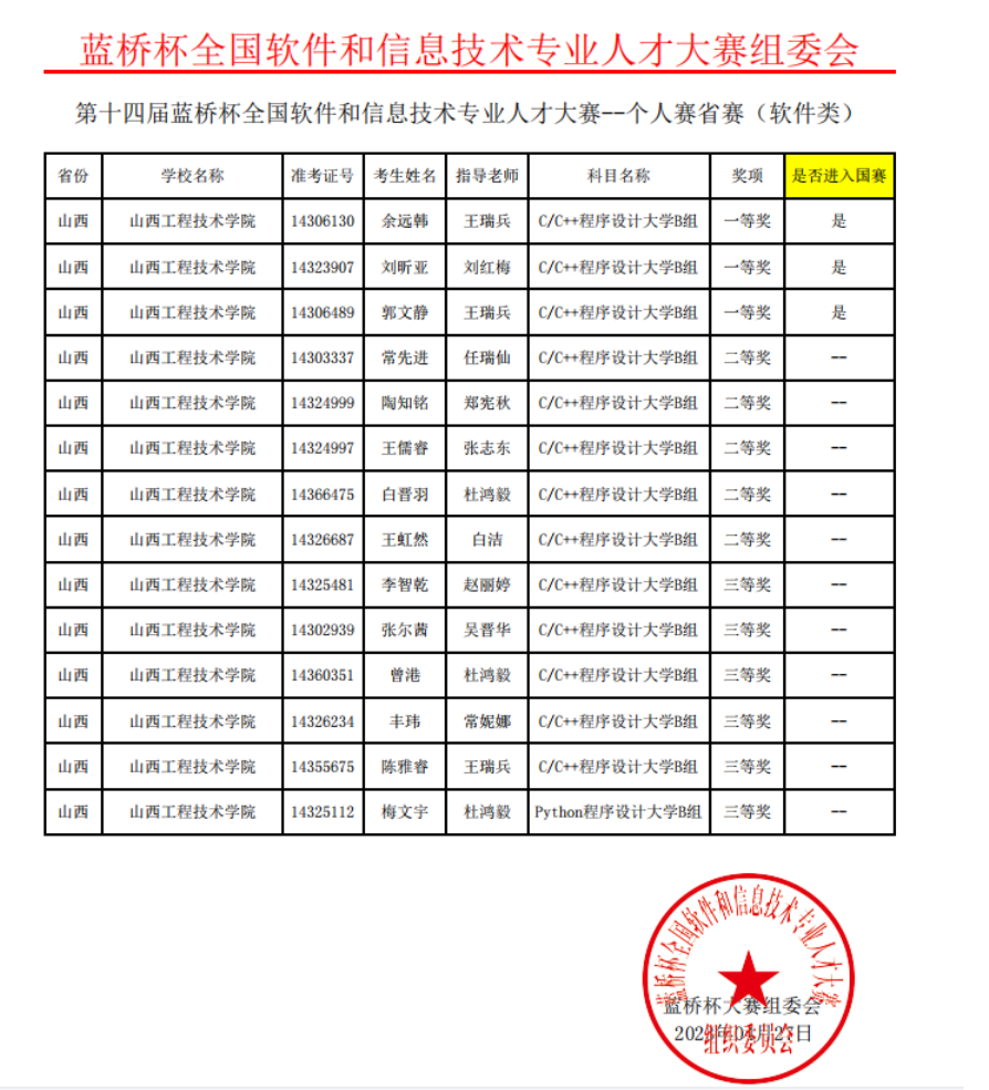第十四届“蓝桥杯大赛”省赛于4月8日举行,大数据与智能工程系作为本次大赛软件类赛项的分赛点,有60余名学生参加比赛。其中,14名学子通过激烈的竞争和角逐,在山西赛区中脱颖而出,喜获佳绩。系部教师指导学生获得一等奖3名、二等奖5名、三等奖6名。