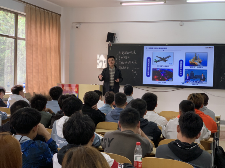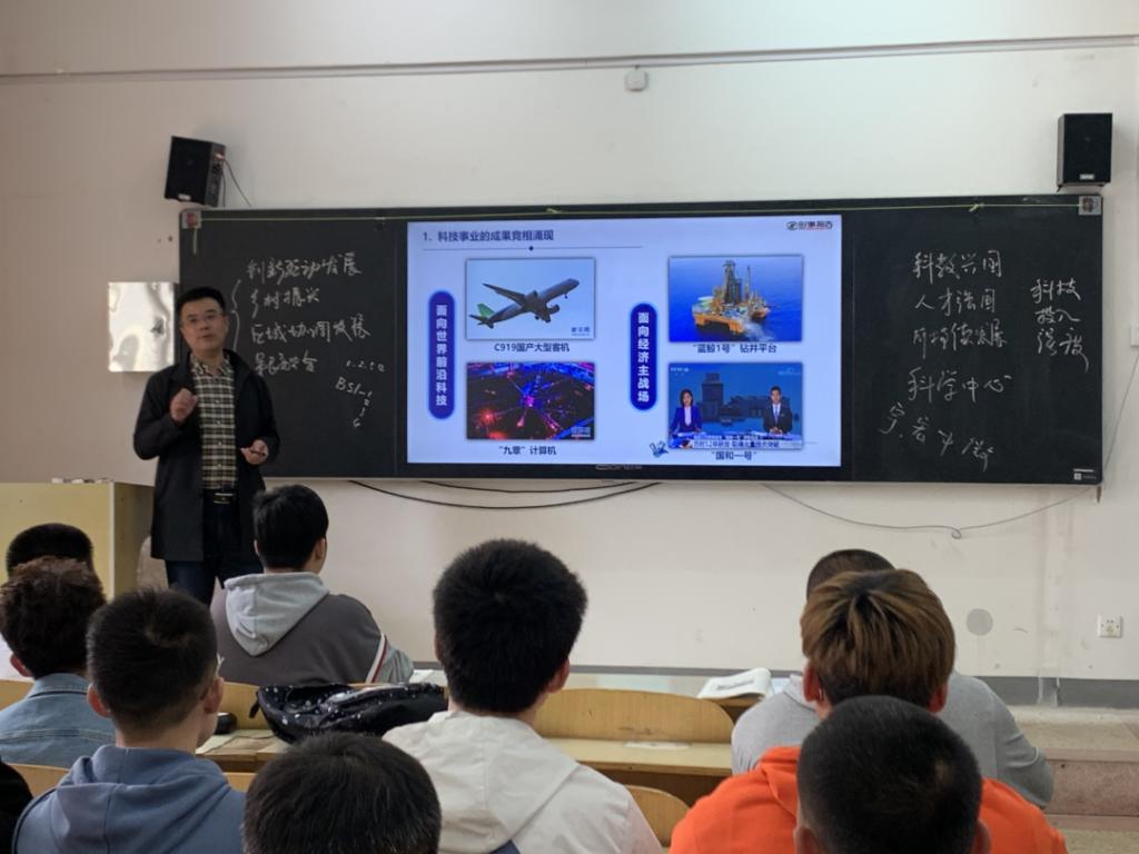 首先,姜俊兵副院长以坚定实施“七大战略”为切入,讲述了中国近几年的经济与科技发展。并提到了世界科学中心的五次转移轨迹:意->英->法->德->美,他表示在这五次科学中心转移过程中,领先科技现身哪里、尖端人才流向哪里,发展的制高点和经济的竞争力就转到哪里。自2010年开始,中国科技创新持续发力,屡现精彩。在经过60多年的长期积累发展,中国的科技创新能力和水平快速提升,已经成为具有重要影响力的科技大国。随后,姜副院长提出了9个重要理论:主导、主体、支撑、需求、服务、保障、人才、平台、项目,并结合当前世界科技发展形势,谈到了我国科技发展的短板问题依然存在,比如“华为断芯”“中兴禁令”等事件,引导学生正确认识当前我国科技发展的水平和特点。为此姜副院长鼓励我们要努力学习科学文化知识,增强建成科技强国的使命感和责任心,在将来的某一天可以尽自己的绵薄之力来解决我们国家所遇到的短板。最后姜副院长提到要想发展好科技和经济,需做到以下四点:打好核心技术攻关战,提升企业技术创新能力,激发科技人才创新活力,完善科技创新体制机制。姜副院长循序渐进的教学方式让同学们对所讲的知识印象更加深刻,同时也吸引着同学们的注意力,受到了同学们的一致好评。本次课程使同学们深刻了解到了中国近几年的发展,也从中得知了中国是怎样从一个软弱的国家发展成强大的国家。