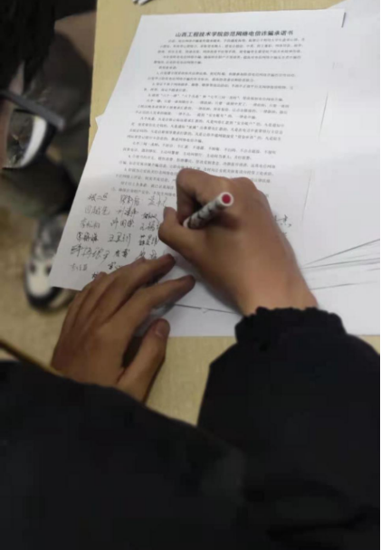 最后,由三位班长带领大家阅读了《ac米兰官方网站防范网络电信诈骗承诺书》,同学们纷纷签上了自己的名字,表示会努力提升安全防范意识,为防范电信网络诈骗助力!