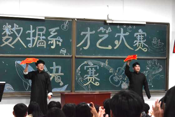 中场,大数据系精心准备了“听歌曲,猜歌名”活动。同学们跃跃欲试,现场氛围异常活跃。中场游戏过后,王佳波,王映博、王虹然表演舞蹈《啦啦》。伴着劲爆的节奏、动感的节拍,两人跳出激情澎湃的舞步,尽现青春风采。张鸿鹏,王世锦,雒天浩,文炜庆四位同学带来小品《甲方乙方》,情节动人,诙谐幽默,将观众带入情节,引得台下酣畅大笑。“珠缨旋转星宿摇,花蔓抖擞龙蛇动”,杨亚楠同学带来快活灵动的舞蹈《girls are antifragile》,曼妙身姿随歌舞动,全场观众为之沸腾。最后,盖嘉翔献唱歌曲《蒲公英的约定》,低沉嗓音随缓缓流出的轻柔旋律起伏,赢得了台下观众倾佩的掌声。